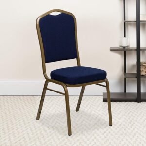- Crown back Conference Chair Blue are a staple in the event industry with their elegant styling and sturdy design to withstand constant use in the hospitality business. This stacking upholstered chair is perfect for the dining room in the home and restaurant.