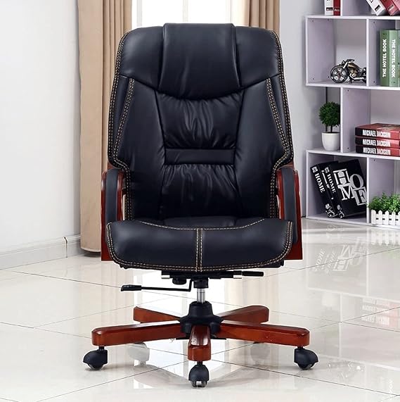 Its sturdy wooden frame and armrests add a touch of elegance, while the rich leather finish complements the overall professional aesthetic. The chair’s ergonomic design ensures proper posture, and the cushioned armrests provide additional comfort. It’s the perfect blend of classic design and modern functionality, making it an excellent choice for professionals who seek both style and support.