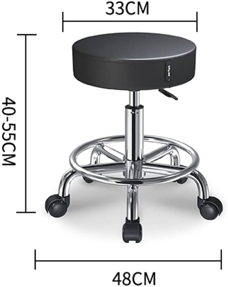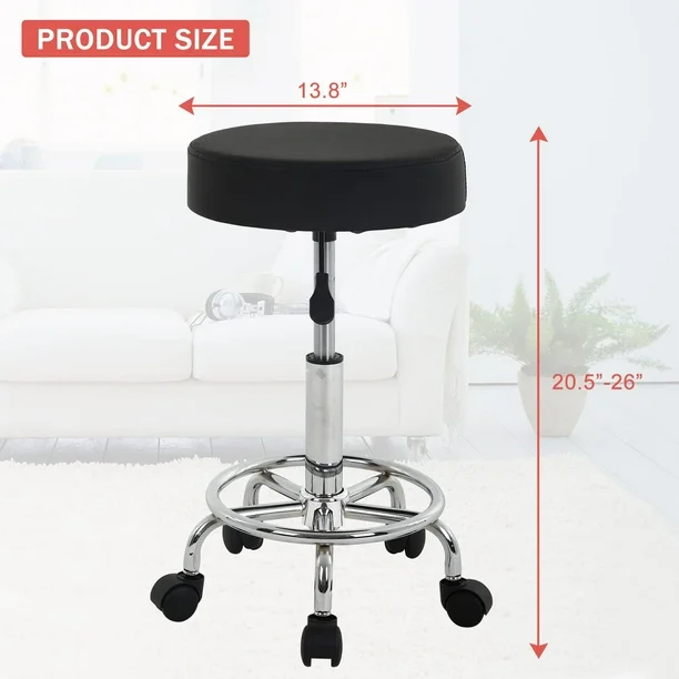 - Ergonomics- Thick cushioned foam seat provides firm support and offers a more comfortable sitting experience. The salon stool with wheels has a built-in foot ring that provides extra comfort for your feet.