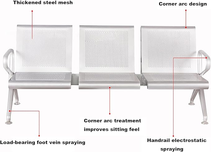 - Strong Weight Capacity: This waiting chair is made of cold-rolled steel, which is a very sturdy material. The overall bench construction is quite durable, thickened seat board can hold up to 440 lbs。
